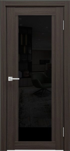 Межкомнатная дверь К-11 тон грей остекление лакобель черное