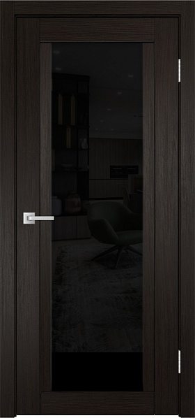 Межкомнатная дверь К-11 тон венге остекление лакобель черное