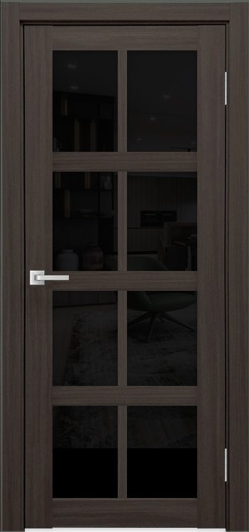 Межкомнатная дверь К-8 тон грей остекление лакобель черное
