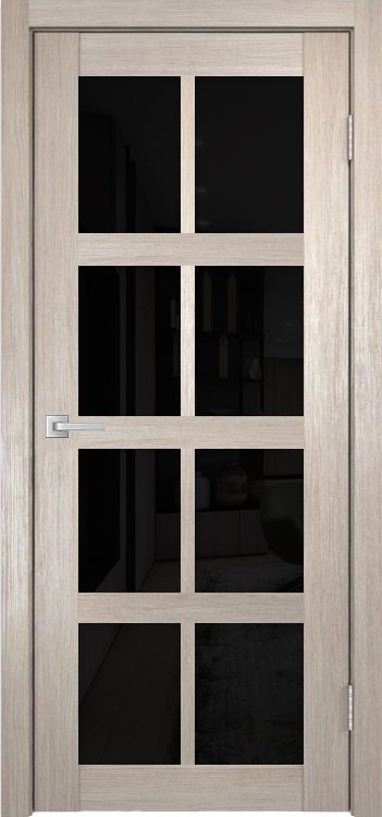 Межкомнатная дверь К-8 тон кремовая лиственница остекление лакобель черное