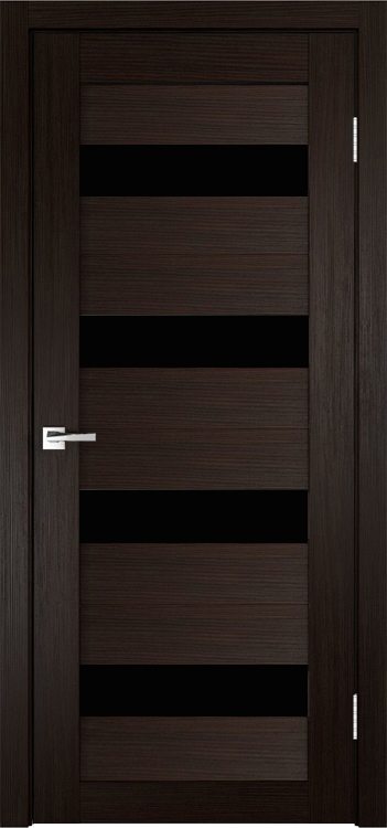 Межкомнатная дверь X-8 тон венге остекление лакобель черное