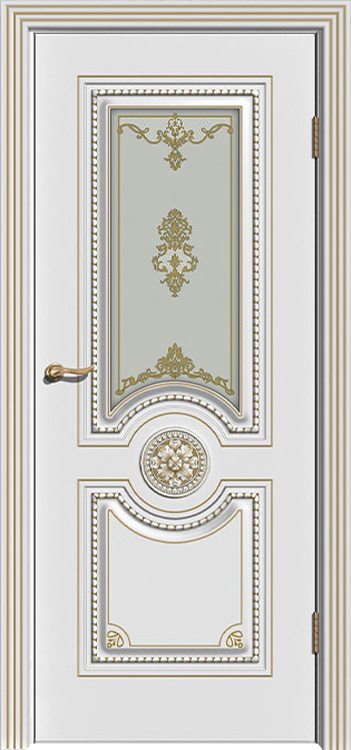 Межкомнатная дверь Олимп рал 9010 остекление белое матовое с рис.